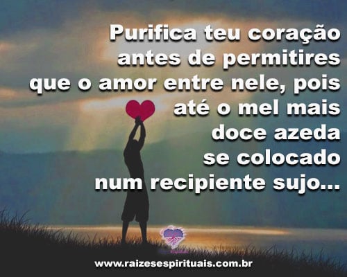 Purifica teu coração antes de permitires que o amor entre nele, pois até o mel mais doce azeda se colocado num recipiente sujo...